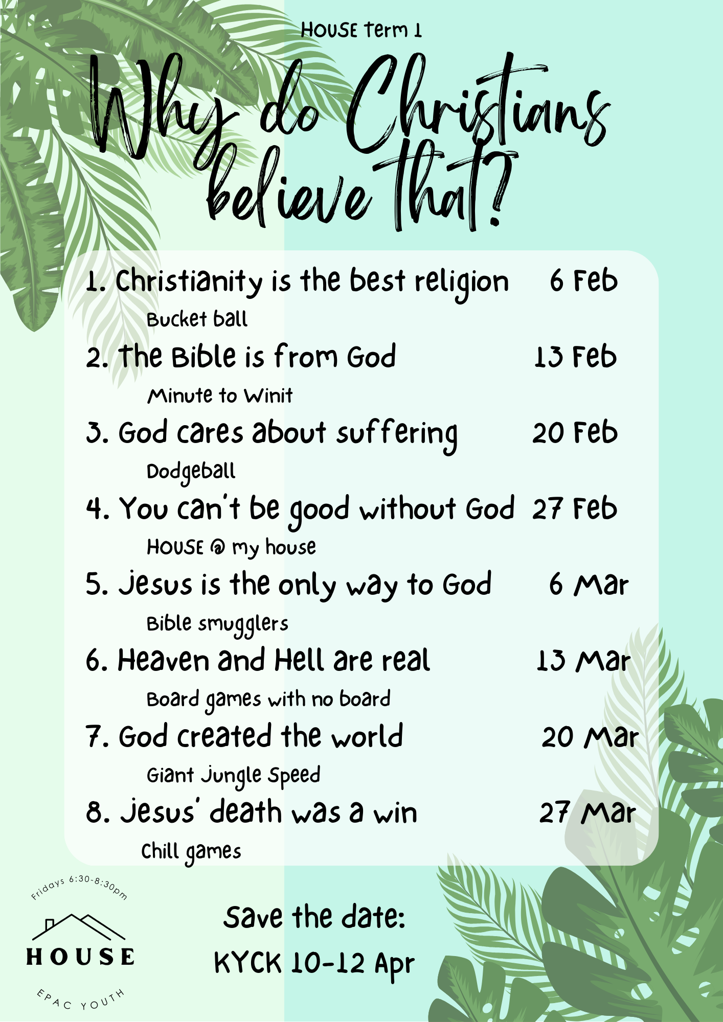 HOUSE is a place for students in years 6-12 to gather, relax, play games, share supper, and hear about Jesus.